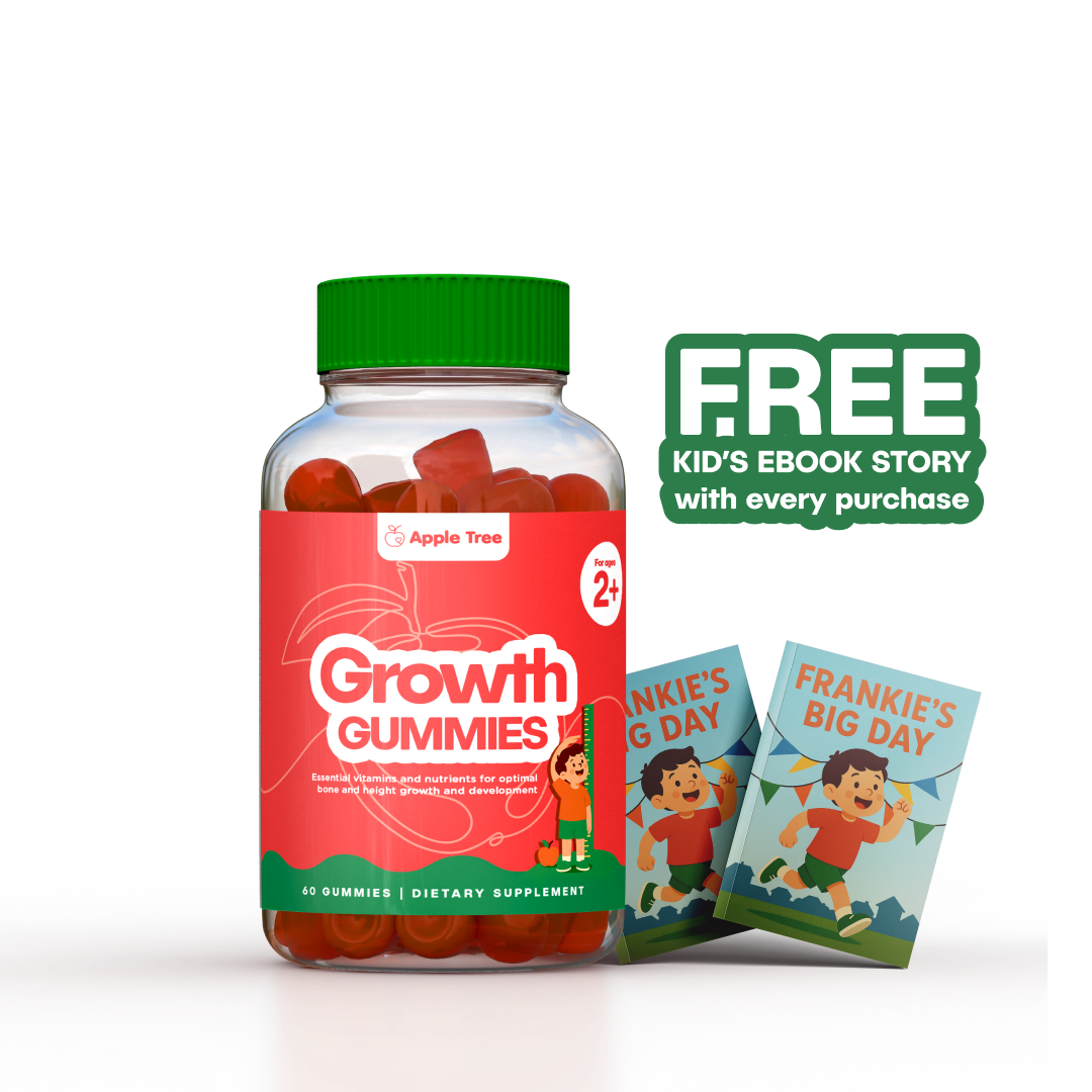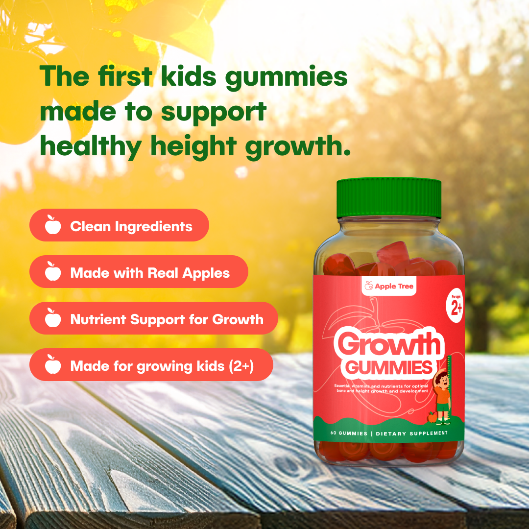 Yes — Apple Tree Gummies are specially formulated with key nutrients like Vitamin D, Vitamin A, and Zinc, which research has shown to support healthy growth in children. For example, studies have linked Vitamin D and Calcium with stronger bones, and Zinc with measurable height gains in kids.